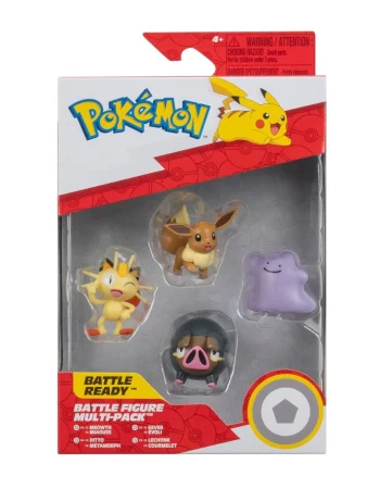 Figura Pokémon batalla 4 Pzas Jazwares u2013 Meowth Ditto Eevee Lechonk