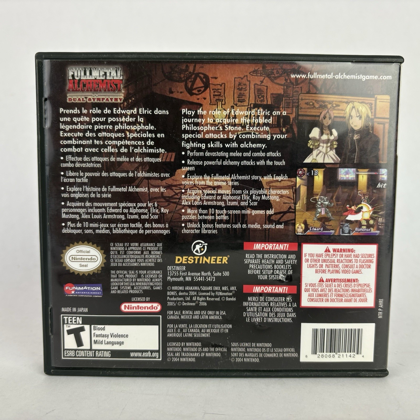 El juego fullmetal alchemist ds Dual Sympathy es una pieza imprescindible para los coleccionistas de videojuegos retro y fans del popular anime y manga Fullmetal Alchemist. Este título para Nintendo DS está completo en caja (CIB), probado y con manual incluido, lo que garantiza su autenticidad y funcionalidad.